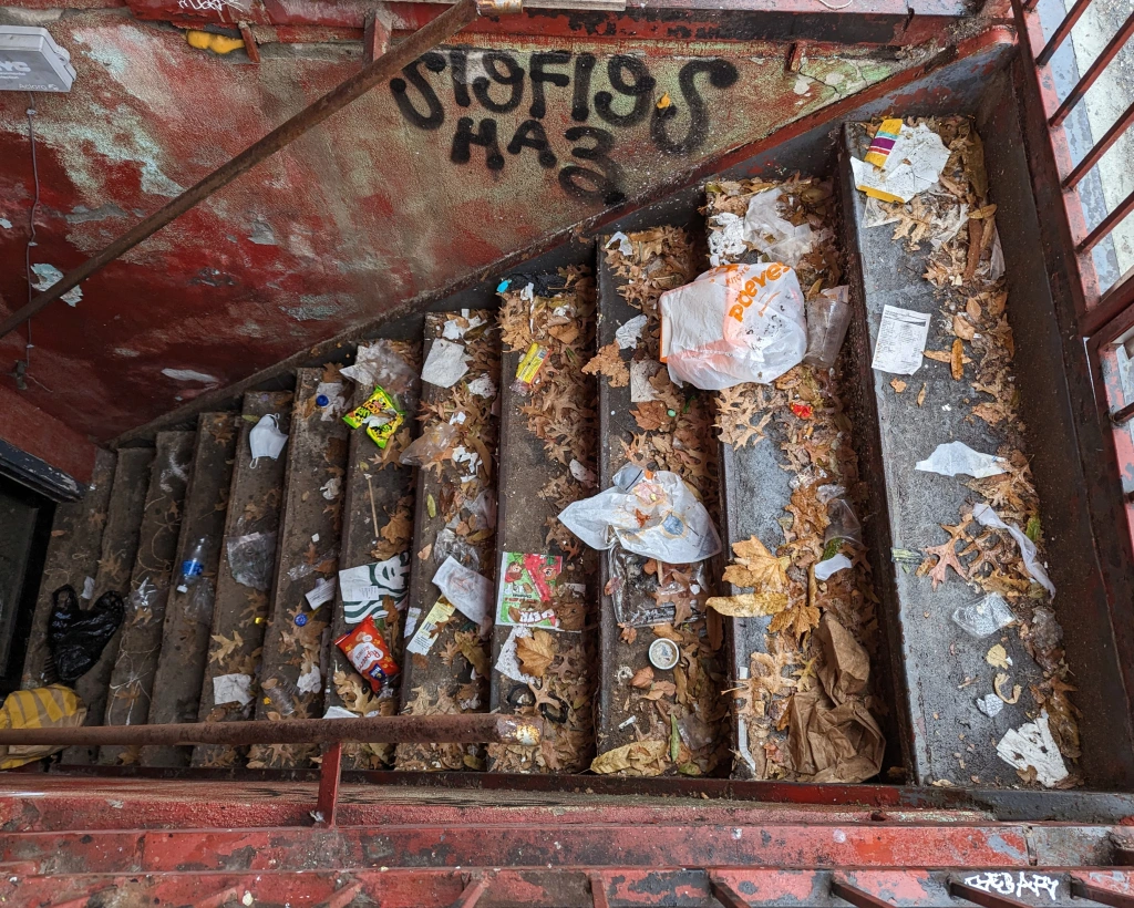 “Then why are there papers, bags and… is that an old Visa card on the floor?”